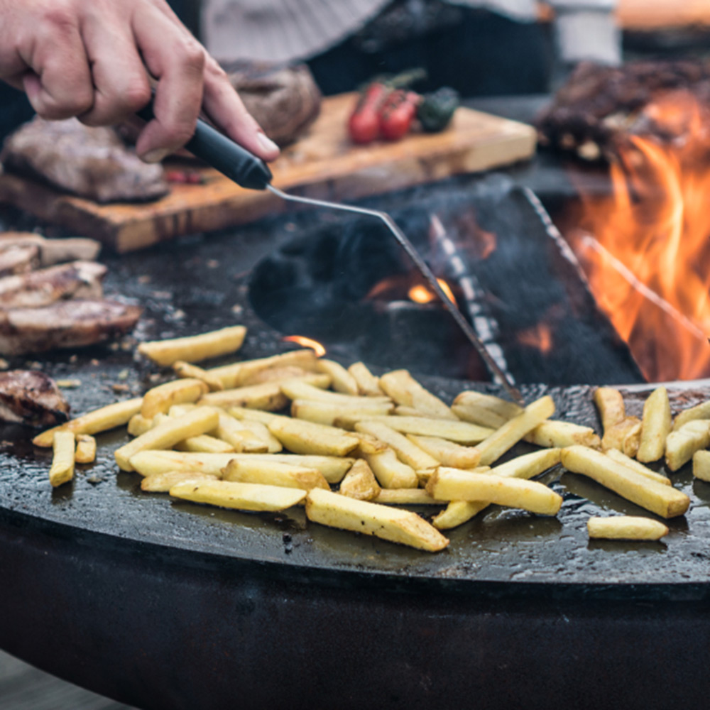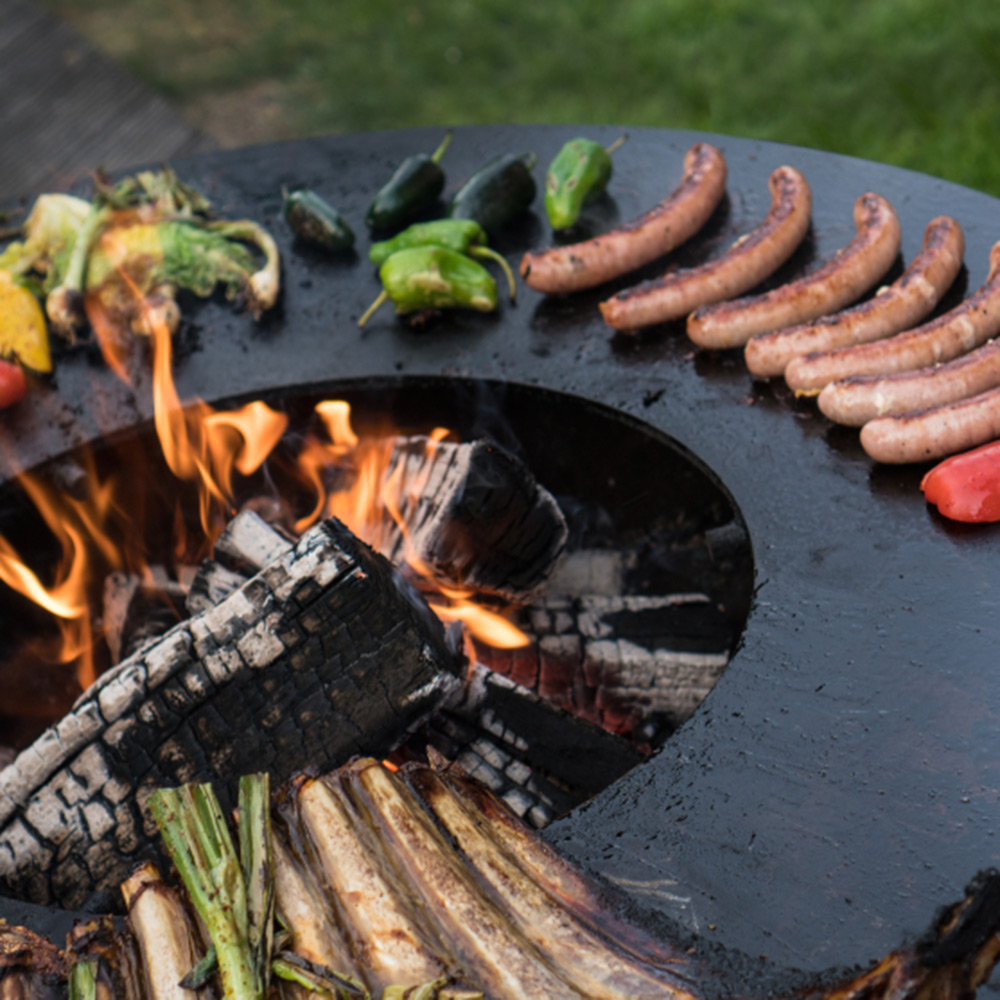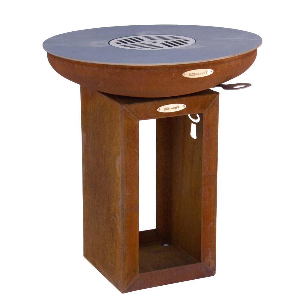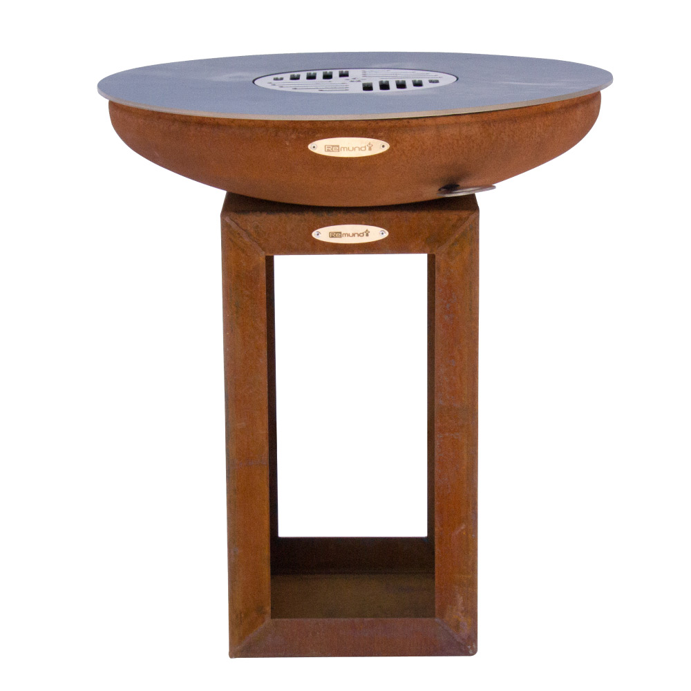 Klasický design, robustní materiály a vysoce kvalitní zpracování. Německá designová ohniště Remundi všechny tyto aspekty spojují a přivádějí k dokonalosti. Poskytují harmonickou atmosféru táborového ohně a zároveň umožňují připravit řadu specialit a lahůdek. Společenský způsob venkovního grilování! V designových ohništích Remundi můžete používat jak klasické dřevo, tak i dřevěné uhlí. Základna hořícího ohně se nachází pod úrovní grilovací plotny, která se takto ohřívá až na 300 °C. Díky zvláštní geometrii není teplo na grilovací plotně rozloženo rovnoměrně, tvoří se teplotní zóny. To umožňuje souběžnou přípravu pokrmů, vyžadujících různé grilovací teploty. Designová ohniště Remundi mají jako jediná na trhu zabudovaný systém plynule nastavitelného ovládání přívodu vzduchu, který snadno ovládáte pomocí táhla, umístěného zvnějšku ohniště. Všechny součásti tohoto systému jsou vyrobeny z vysoce kvalitní nerezové oceli třídy 1.4301. Čištění je velmi snadné - po dohoření jednoduše zvednete ovládání přívodu vzduchu a smetete popel otvorem ve dně ohniště rovnou do kbelíku na popel.