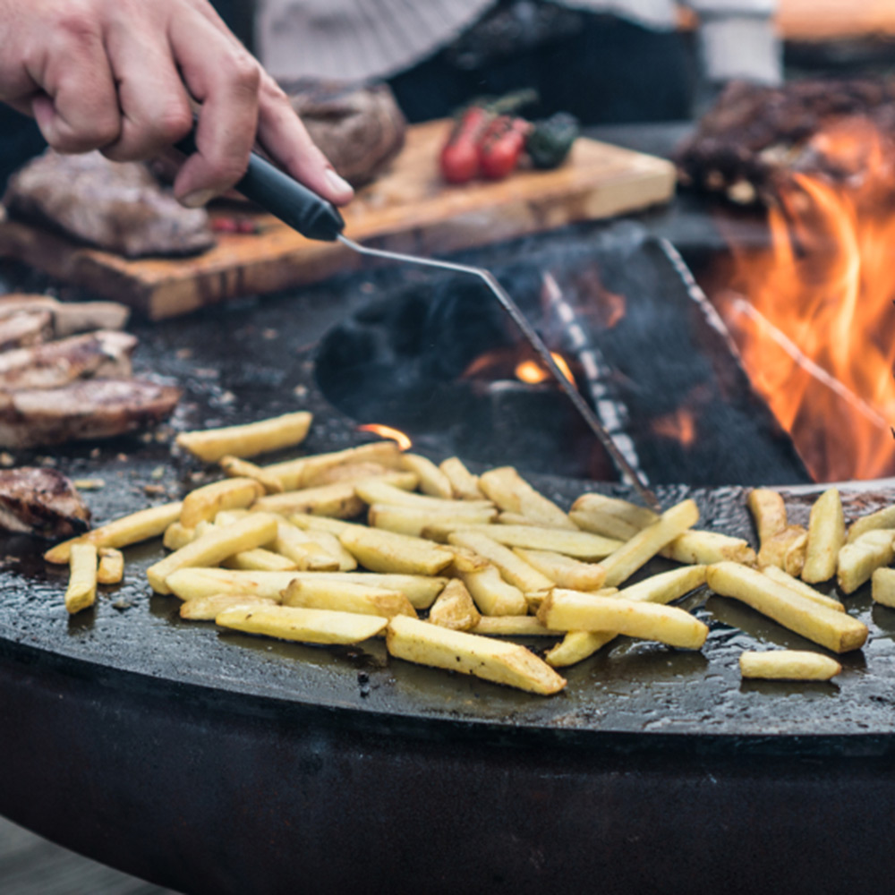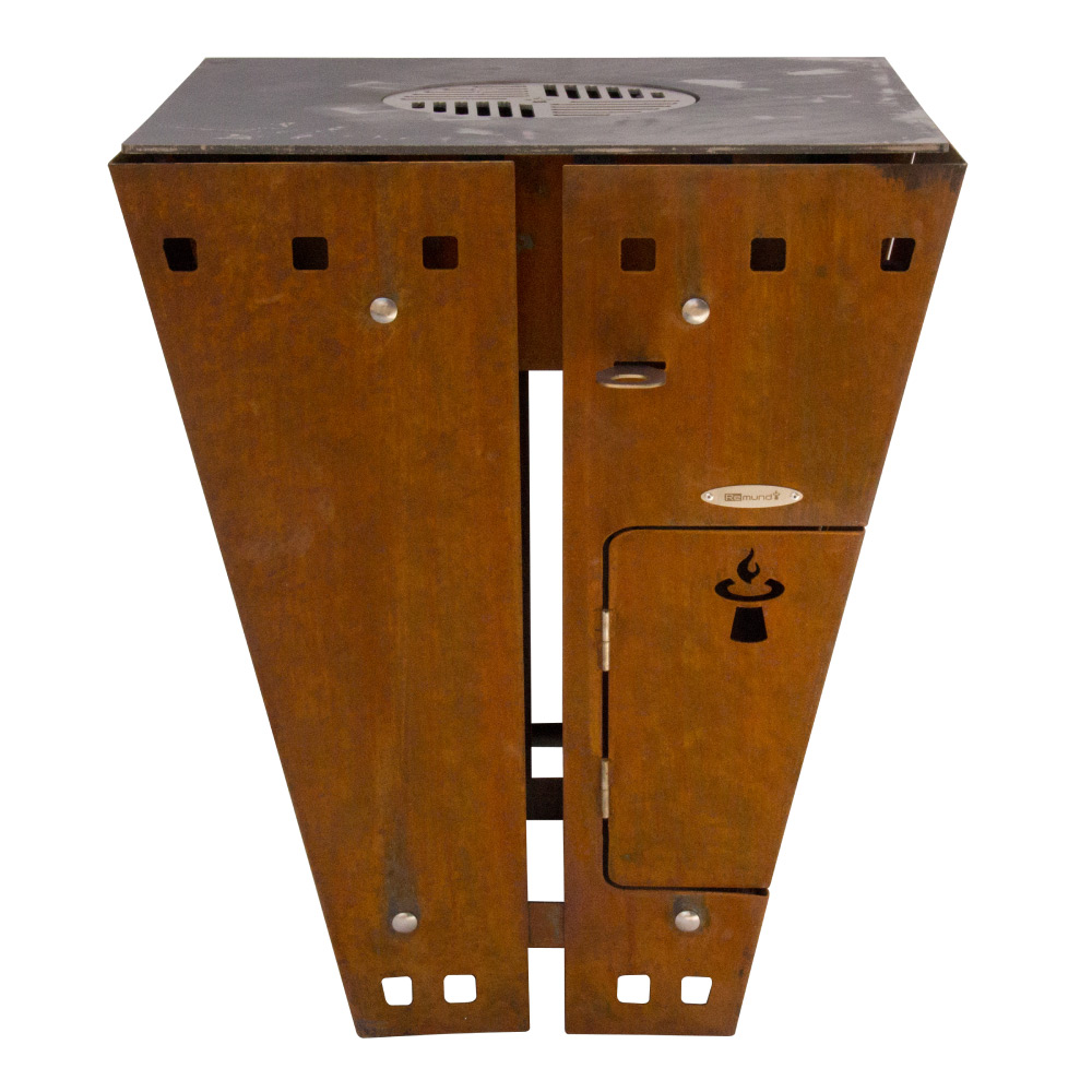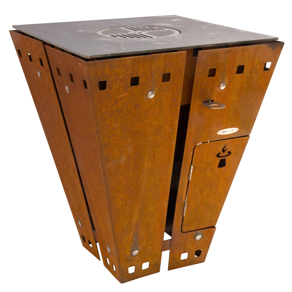 Klasický design, robustní materiály a vysoce kvalitní zpracování. Německá designová ohniště Remundi všechny tyto aspekty spojují a přivádějí k dokonalosti. Poskytují harmonickou atmosféru táborového ohně a zároveň umožňují připravit řadu specialit a lahůdek. Společenský způsob venkovního grilování! V designových ohništích Remundi můžete používat jak klasické dřevo, tak i dřevěné uhlí. Základna hořícího ohně se nachází pod úrovní grilovací plotny, která se takto ohřívá až na 300 °C. Díky zvláštní geometrii není teplo na grilovací plotně rozloženo rovnoměrně, tvoří se teplotní zóny. To umožňuje souběžnou přípravu pokrmů, vyžadujících různé grilovací teploty. Designová ohniště Remundi mají jako jediná na trhu zabudovaný systém plynule nastavitelného ovládání přívodu vzduchu, který snadno ovládáte pomocí táhla, umístěného zvnějšku ohniště. Všechny součásti tohoto systému jsou vyrobeny z vysoce kvalitní nerezové oceli třídy 1.4301. Čištění je velmi snadné - po dohoření jednoduše zvednete ovládání přívodu vzduchu a smetete popel otvorem ve dně ohniště rovnou do kbelíku na popel.